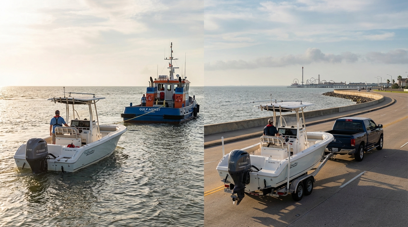 Galveston Boat Towing: On-Water vs. Trailer Towing (What Your Policy Should Cover)